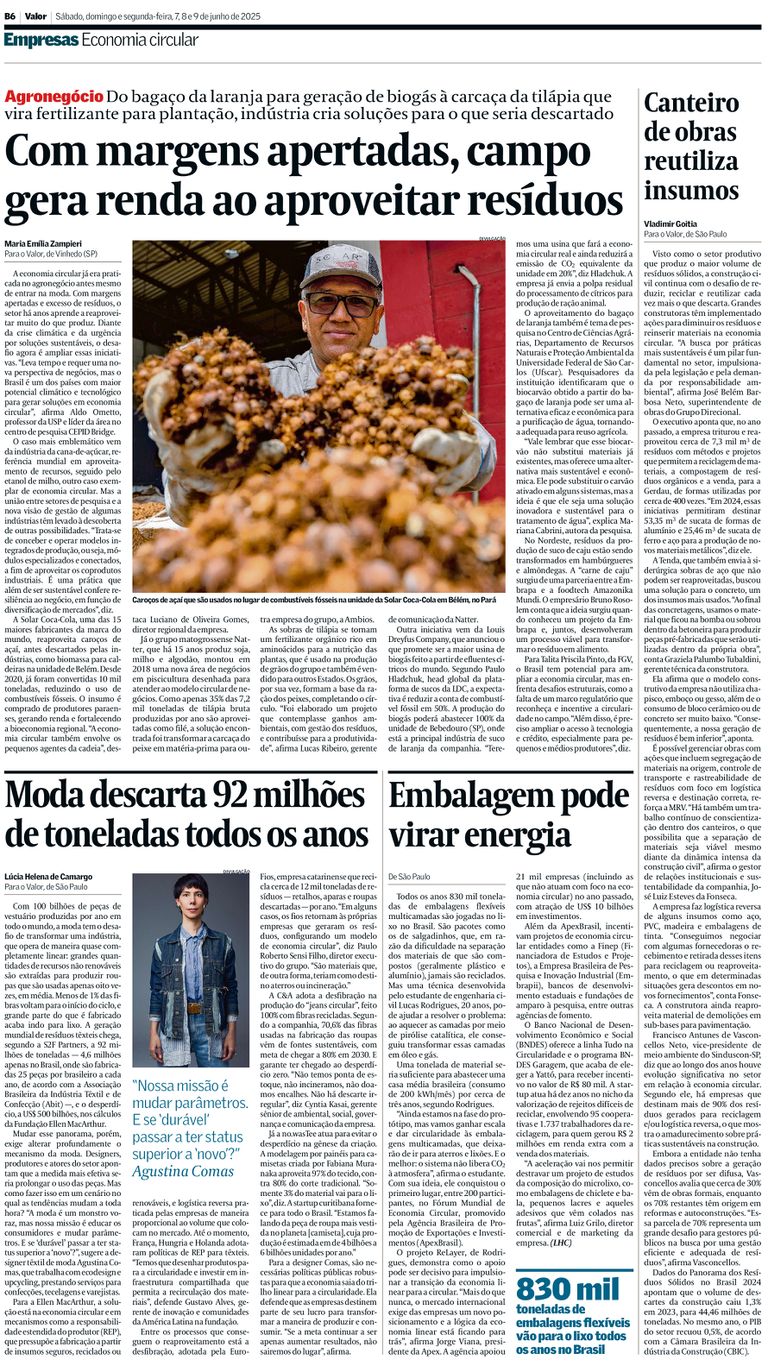 “Para mim, o prêmio representa um marco de oito anos empreendendo com lixo. O que as pessoas jogam fora, para nós, é onde a nova matéria nasce, é importante gerar um impacto social”, afirmou ainda.